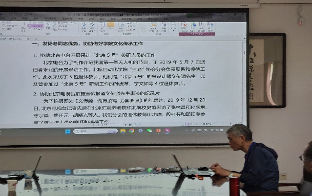 开展的其他相关工作”、“经验、不足和今后工作的思考”等5个方面进行了系统总结。大家一致认为,分会按照“三位一体”工作模式,坚持“有所为有所不为”的原则,尽管遇到了“疫情”的困难,仍然配合学院、校关工委与校“三老”协会开展了丰富多彩的活动,为立德树人、人才培养、党建、传承学院文化等做出了力所能及的贡献。大家以热烈的掌声通过了这个工作报告。