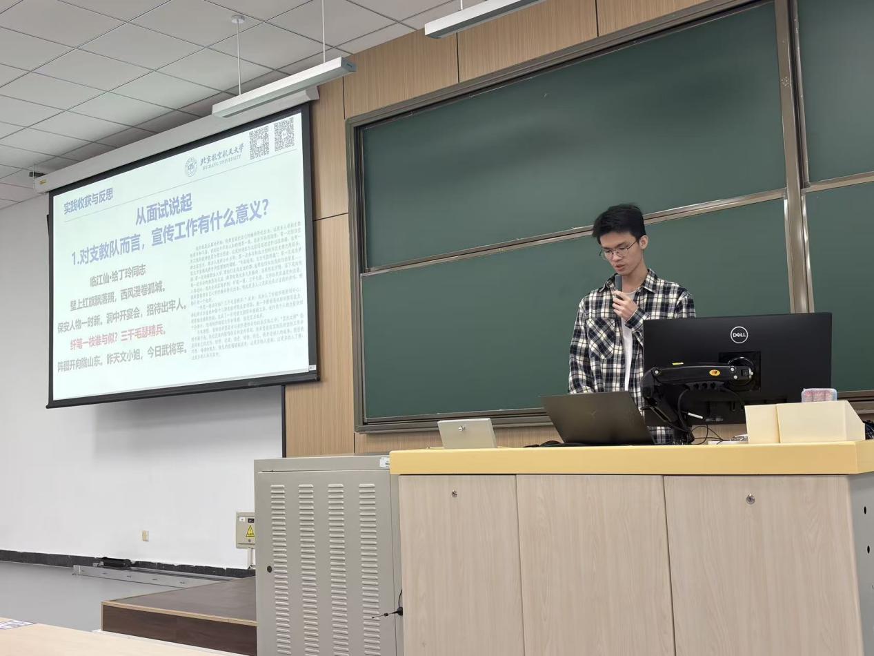 本科学生会副主席的经历,分享他从三期支教实践与所负责的宣传工作中得到的成长与收获。为了突破支教队宣传形式单一的困境,他带领宣传组同学打造了全方位多维度宣传矩阵,遵循“主线串联、多线并举”的设计理念,使蓝天之梯支教队在社会层面取得了更为广泛的认可。在宣传工作中,他以情动人,唤起心灵共鸣;在实践生活中,他开放视野,发掘人性光辉。最后,陈铭良学长还鼓励同学们放下焦虑,“勇敢尝试、大胆探索,做一些自己喜欢的事,也做一些自己不那么喜欢但是良药苦口的事”。